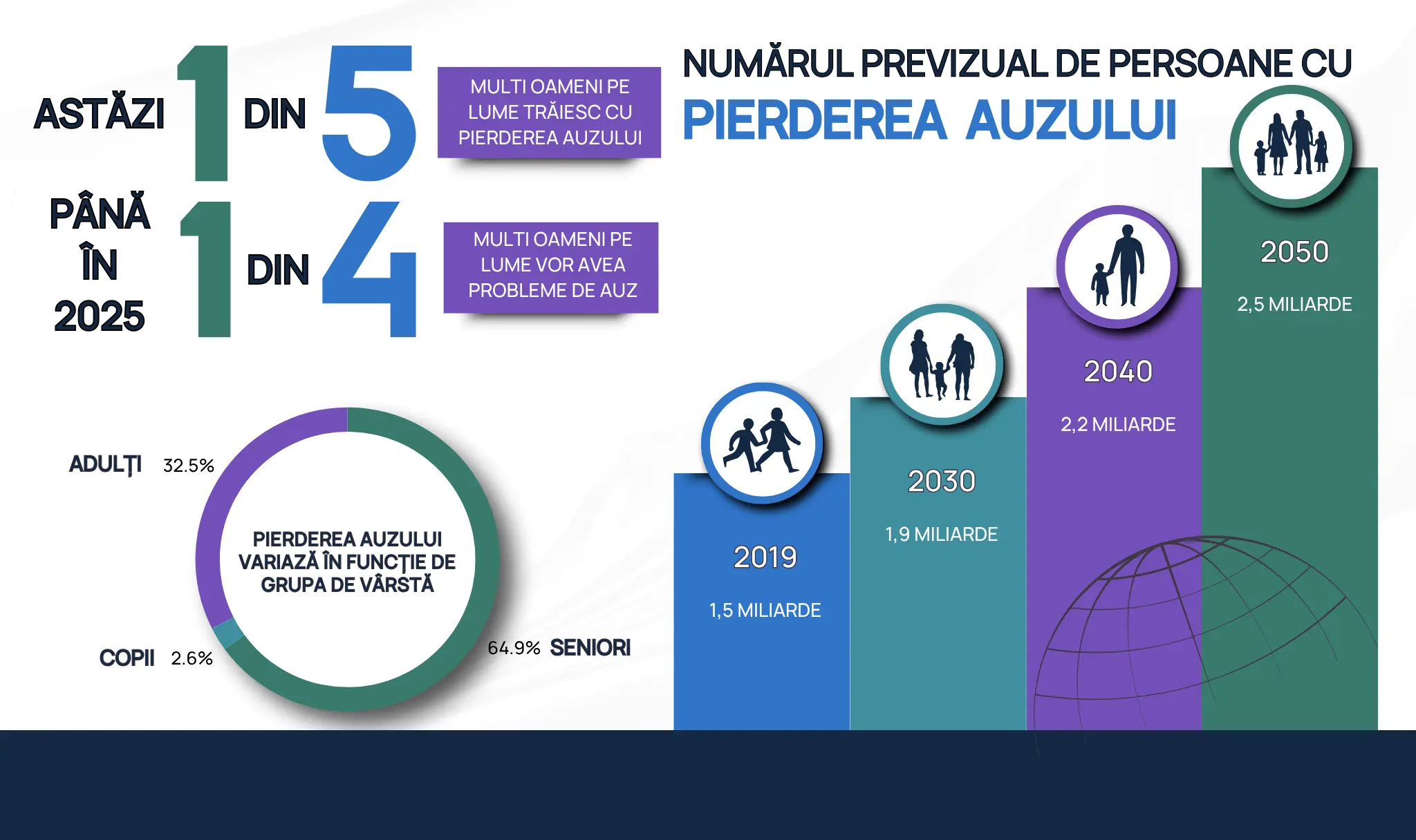 Peste 466 de milioane de oameni din întreaga lume suferă de pierderea auzului în diferite grade. Aceasta reprezintă aproximativ 5% din populația lumii.